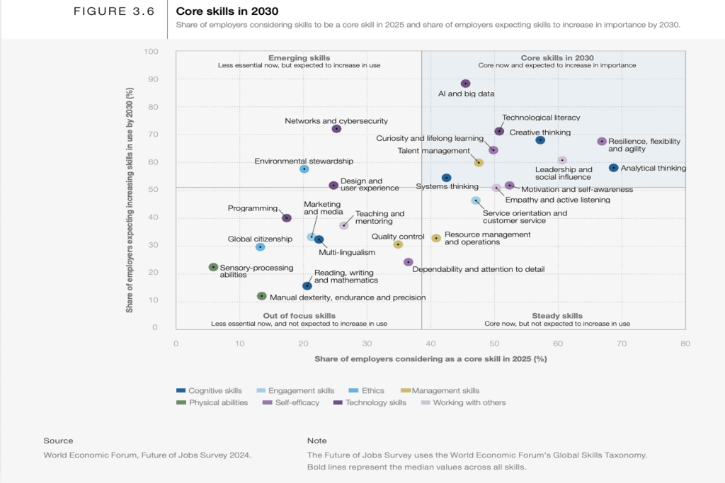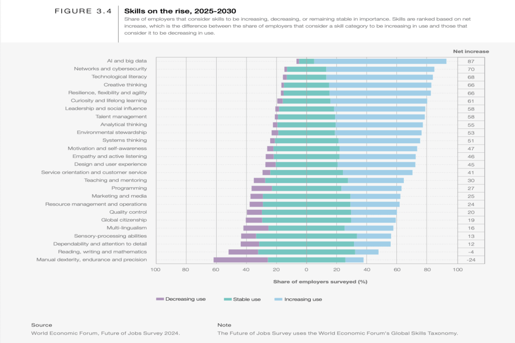 Alhora, les competències digitals (com el pensament computacional o l’anàlisi de dades) passen a tenir molta importància dins de les habilitats necessàries en múltiples sectors.