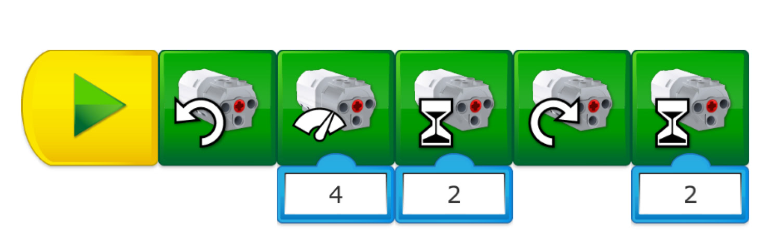 Para controlar el movimiento del robot, es importante entender la relación entre la potencia del motor y el tiempo. Por ejemplo, a igual tiempo, el robot irá más lejos si el nivel de potencia está establecido en 10 en vez de 4.