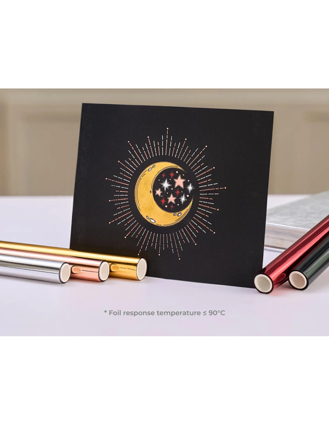 El bolígrafo térmico de transferencia de lámina opera a una temperatura de 90–100°C, que no es ajustable. La temperatura máxima puede variar ligeramente según las condiciones ambientales. Para obtener los mejores resultados, se recomienda utilizar láminas térmicas de xTool. Si decides usar láminas de terceros, asegúrate de que sean láminas adhesivas activadas por calor con una temperatura de activación de aproximadamente 90°C.