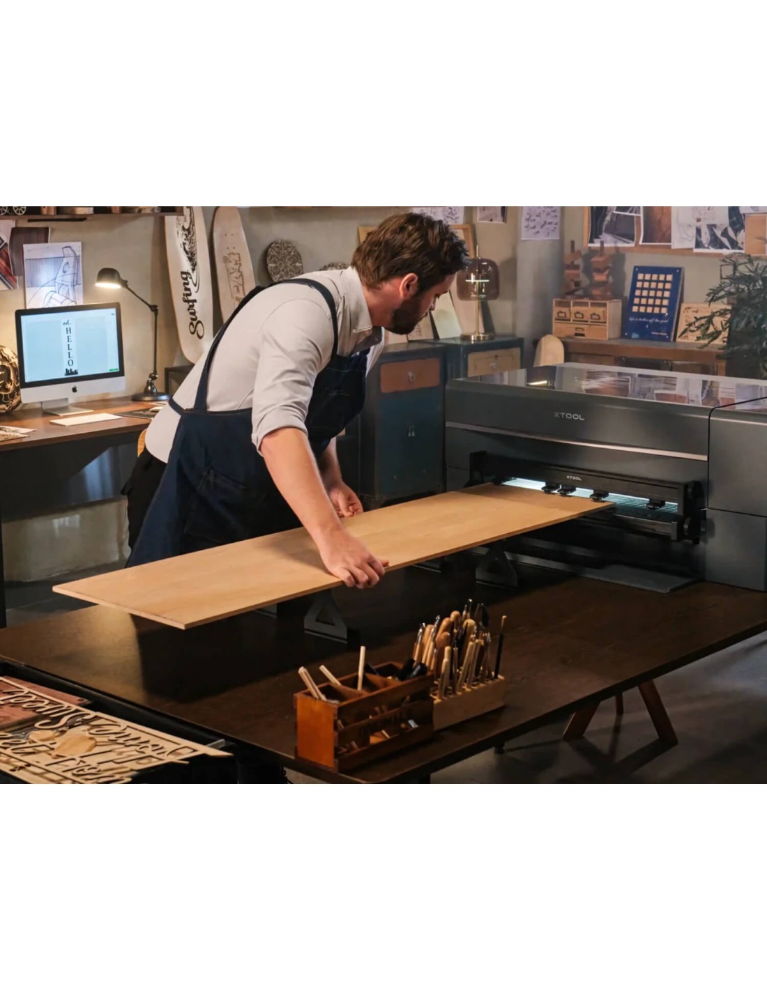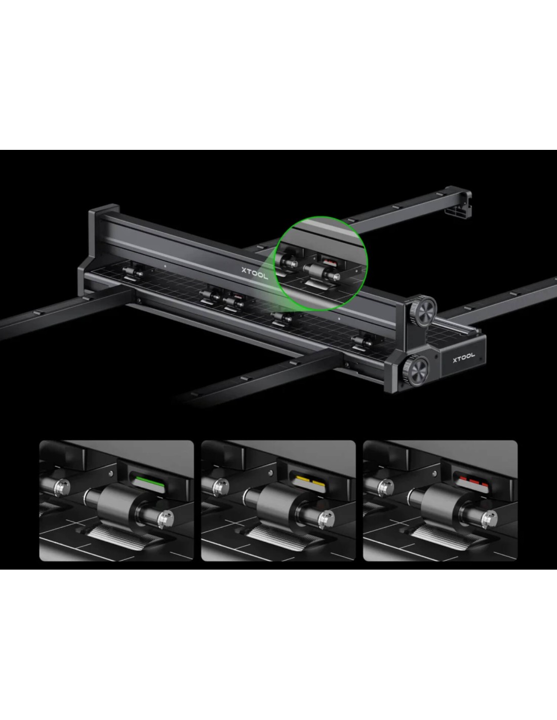 El alimentador automático es un sistema diseñado para trabajar con materiales de mayor tamaño (hasta 99cm) de forma continua a la xTool P2/P2S, ideal para proyectos que requieren gran eficiencia y automatización. Su uso permite una operación sin interrupciones, mejorando la productividad en procesos de corte o grabado.
