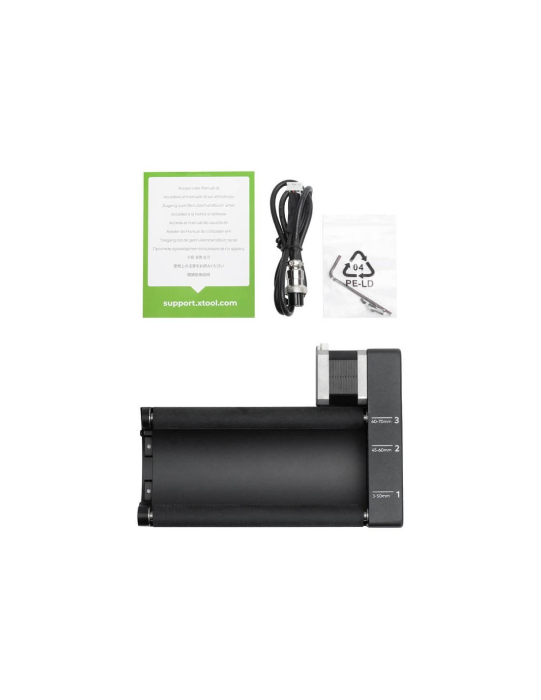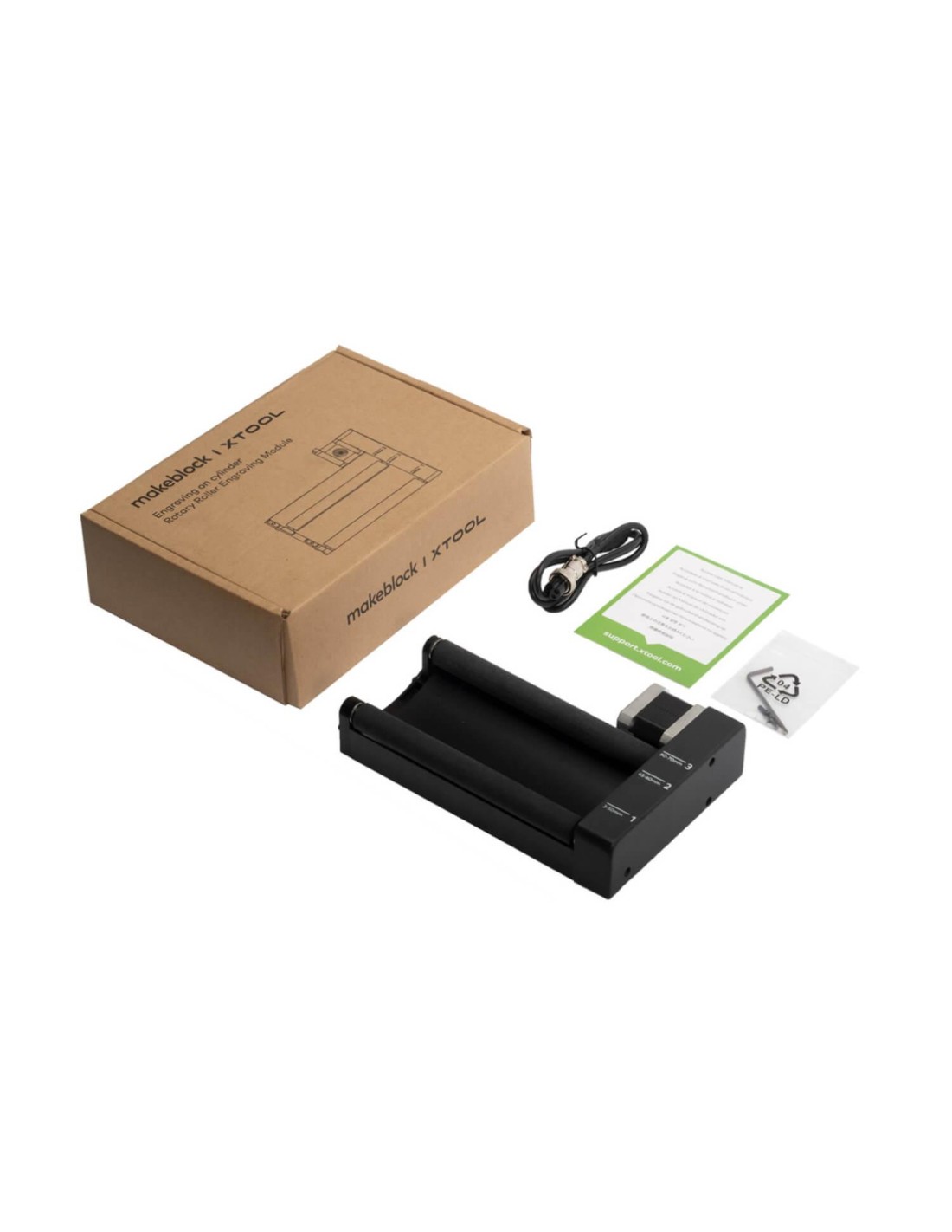 Este módulo de grabado con rodillo giratorio está pensado para educación y permite grabar materiales cilíndricos de diámetros de 3 a 70 mm.
