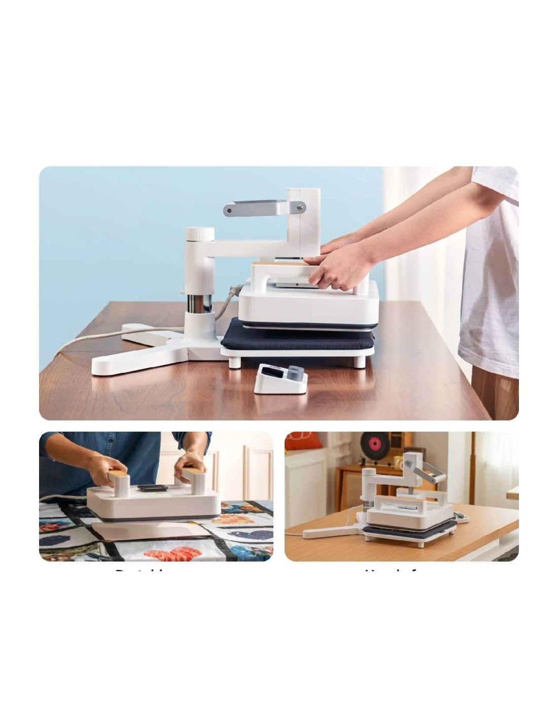 - Mini-prensa de calor xTool: Una prensa más compacta y ligera, perfecta para proyectos más pequeños o de difícil acceso. Es ideal para realizar transferencias térmicas en áreas reducidas o superficies más delicadas.