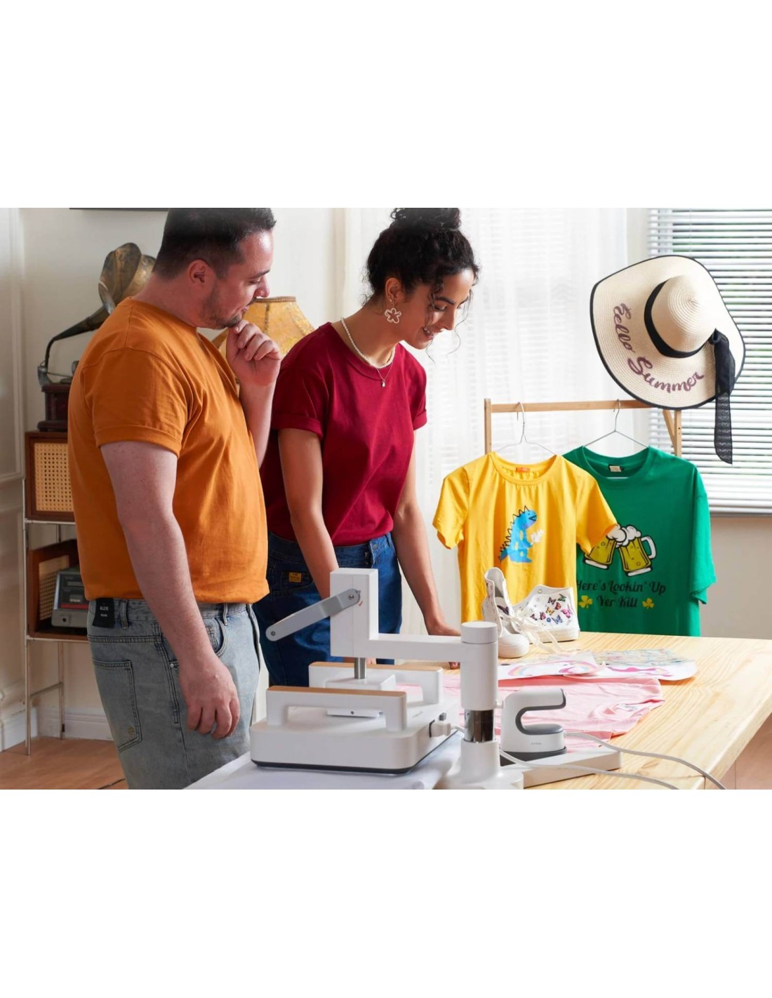 Gracias a su diseño EasyDetach, podrás separar la plataforma para usarla de manera portátil en proyectos grandes o altos, con una altura máxima de 2,5 cm. Esta herramienta proporciona una presión constante y uniforme, lo que asegura resultados perfectos en cada transferencia térmica. Su versatilidad y facilidad de uso la convierten en una opción imprescindible para quienes buscan calidad y flexibilidad en sus proyectos de personalización.